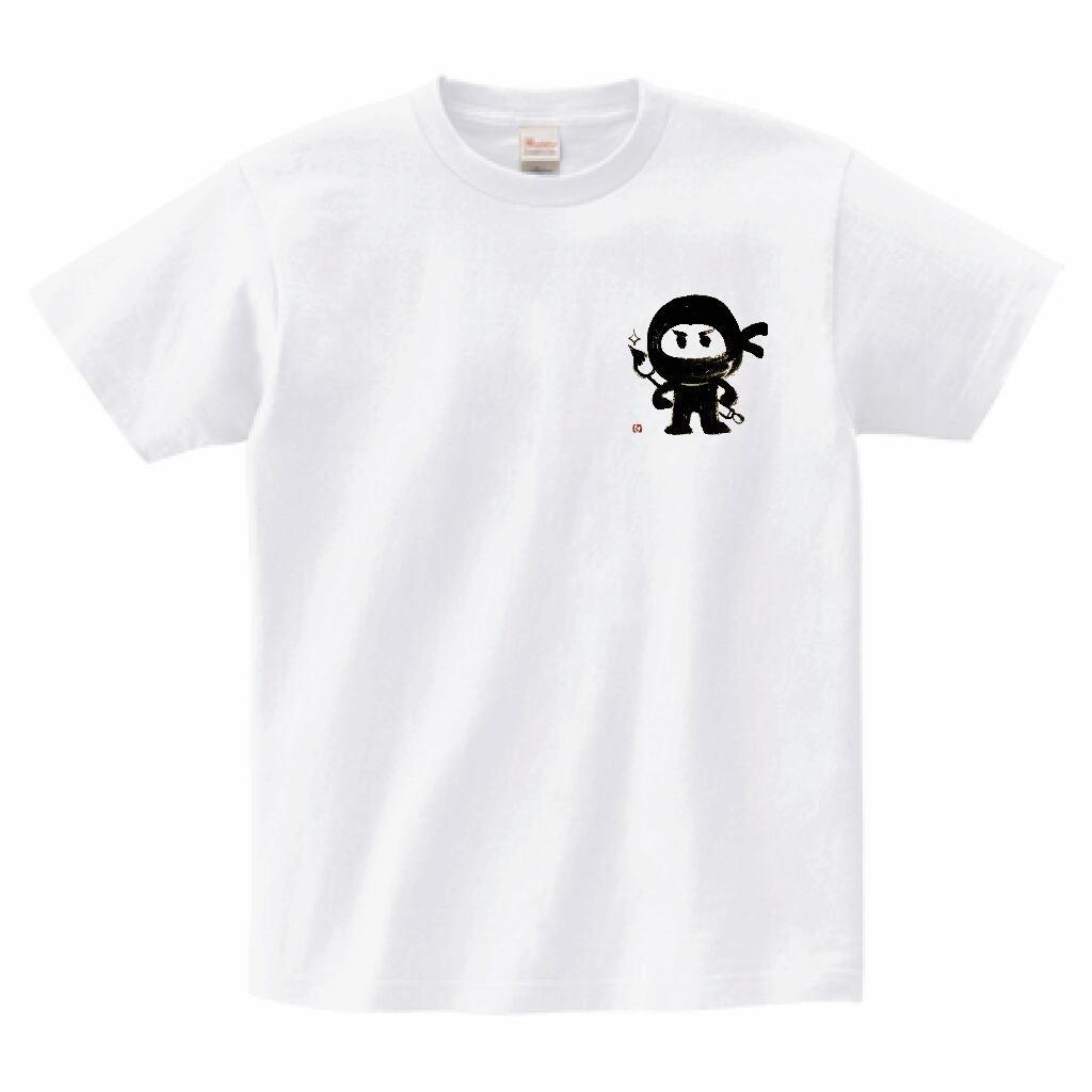 このTシャツは、左胸に毛筆で描かれたかわいくてクールな忍者のデザインが特徴です。