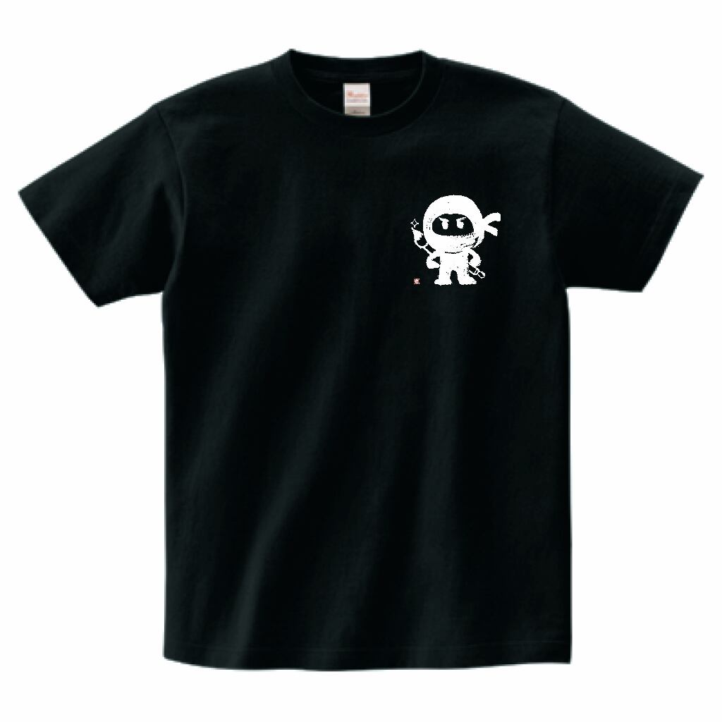このTシャツは、左胸に毛筆で描かれたかわいくてクールな忍者のデザインが特徴です。